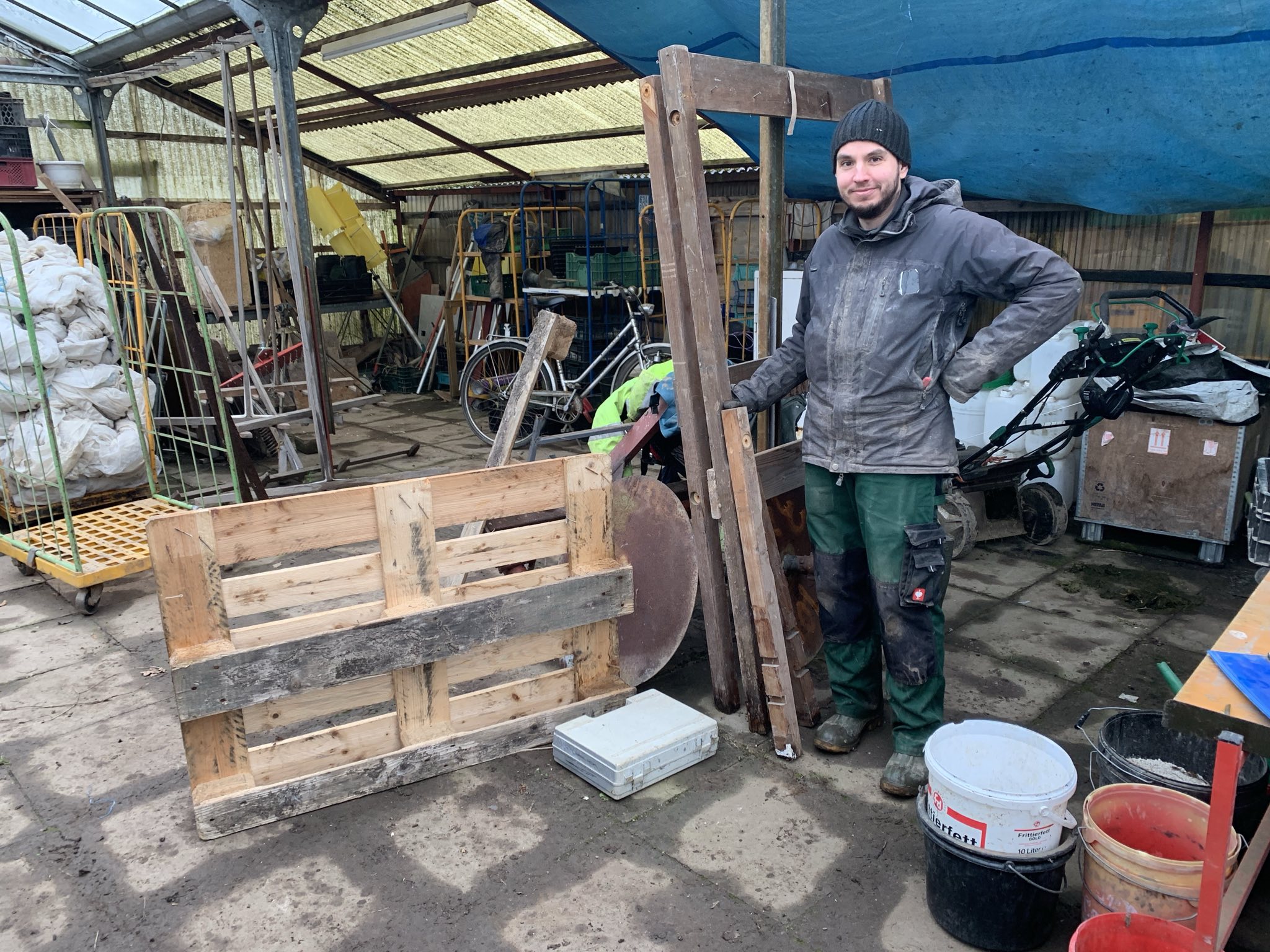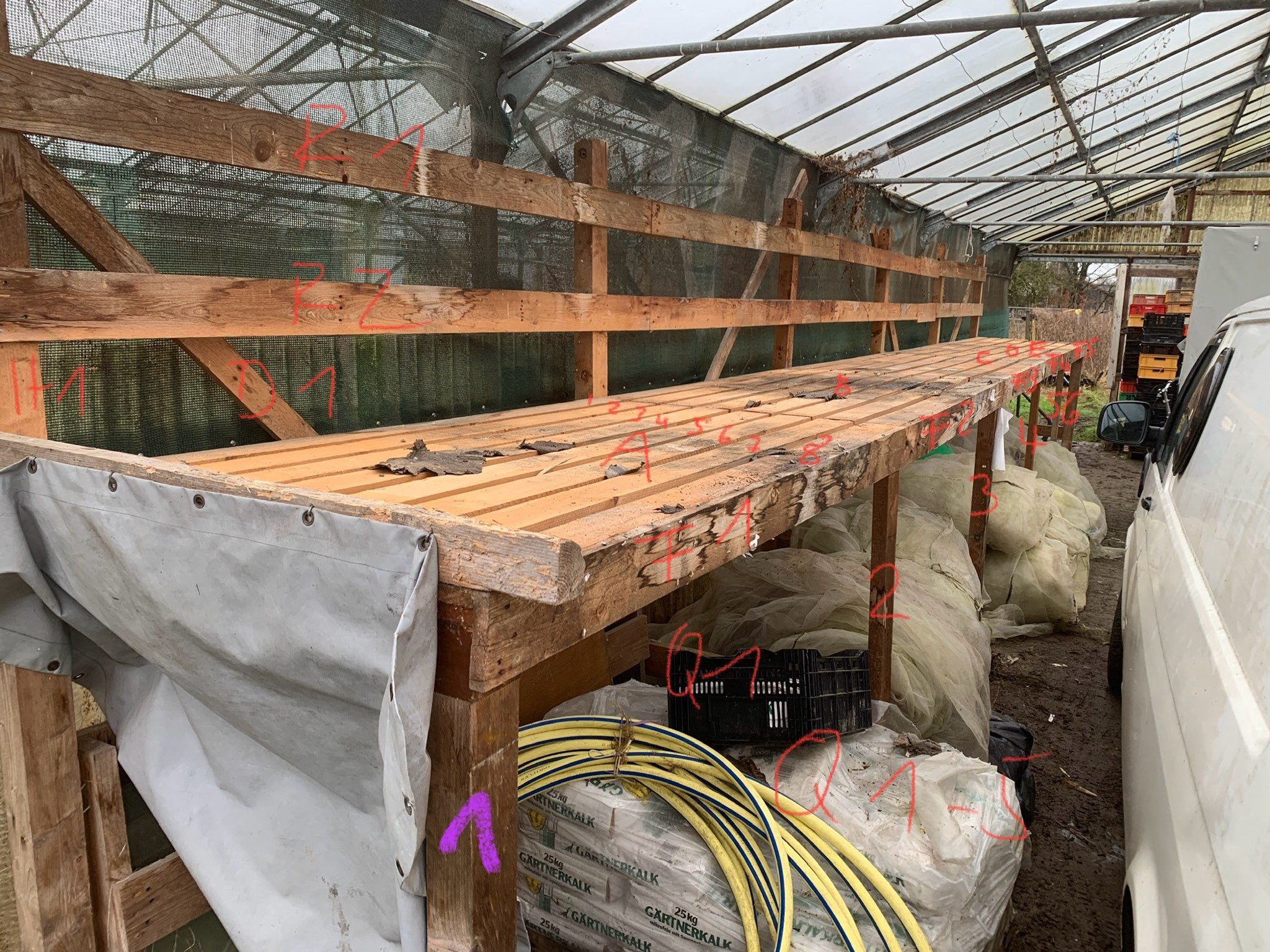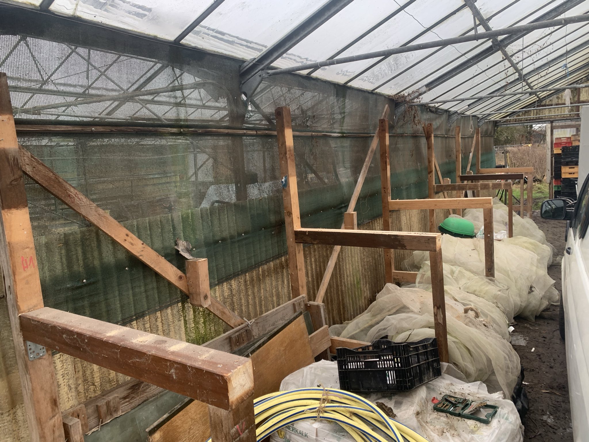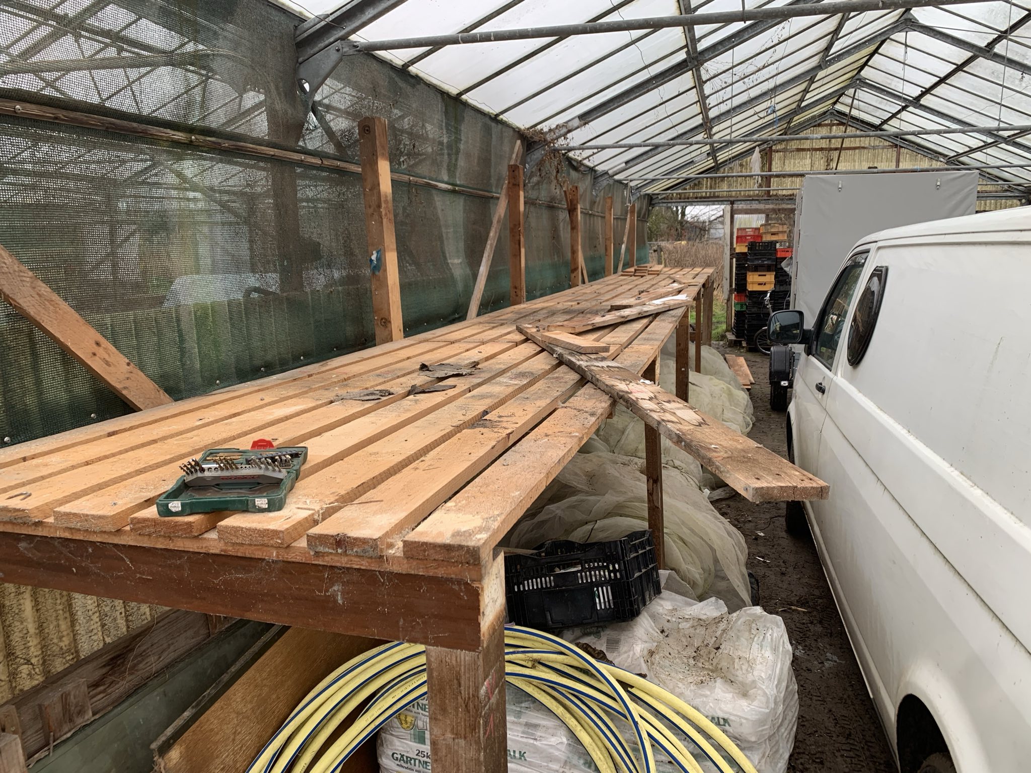 - Riesenregal für Vliese, Netze, Dünger abgebaut, bereit zum