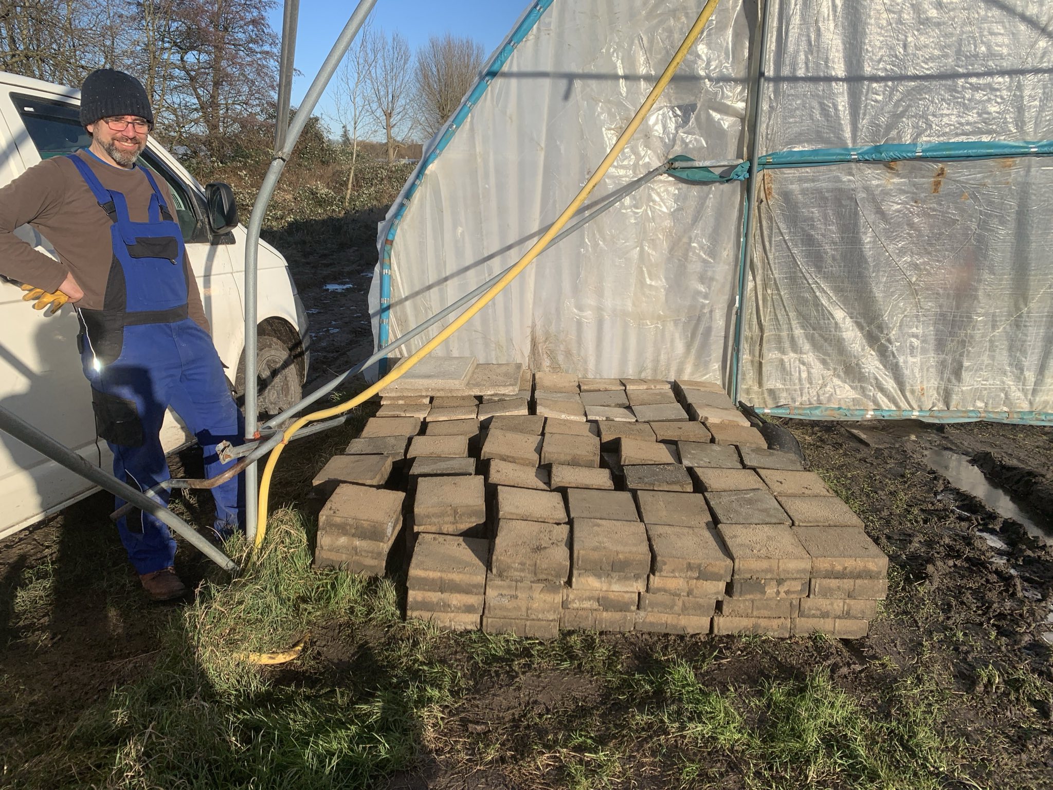 Aufbau am neuen Standort - Gehwegplatten per Kleinanzeigen geschenkt bekommen,