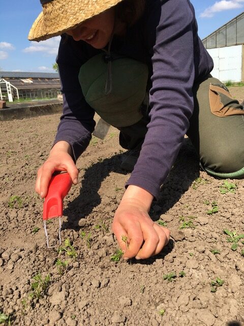 Zu den Fotos: Wir jäten die Sommermöhren (Lena war nicht die ganze Zeit alleine!). Auf dem Acker wachsen jetzt Zwiebeln.