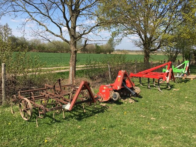 Die Hecker ergrünt. Unsere Anbaugeräte strahlen in der Sonne. Und der Rosenkohl ist gekeimt! Außerdem bereiten wir eine Überraschung für euch vor 🙂