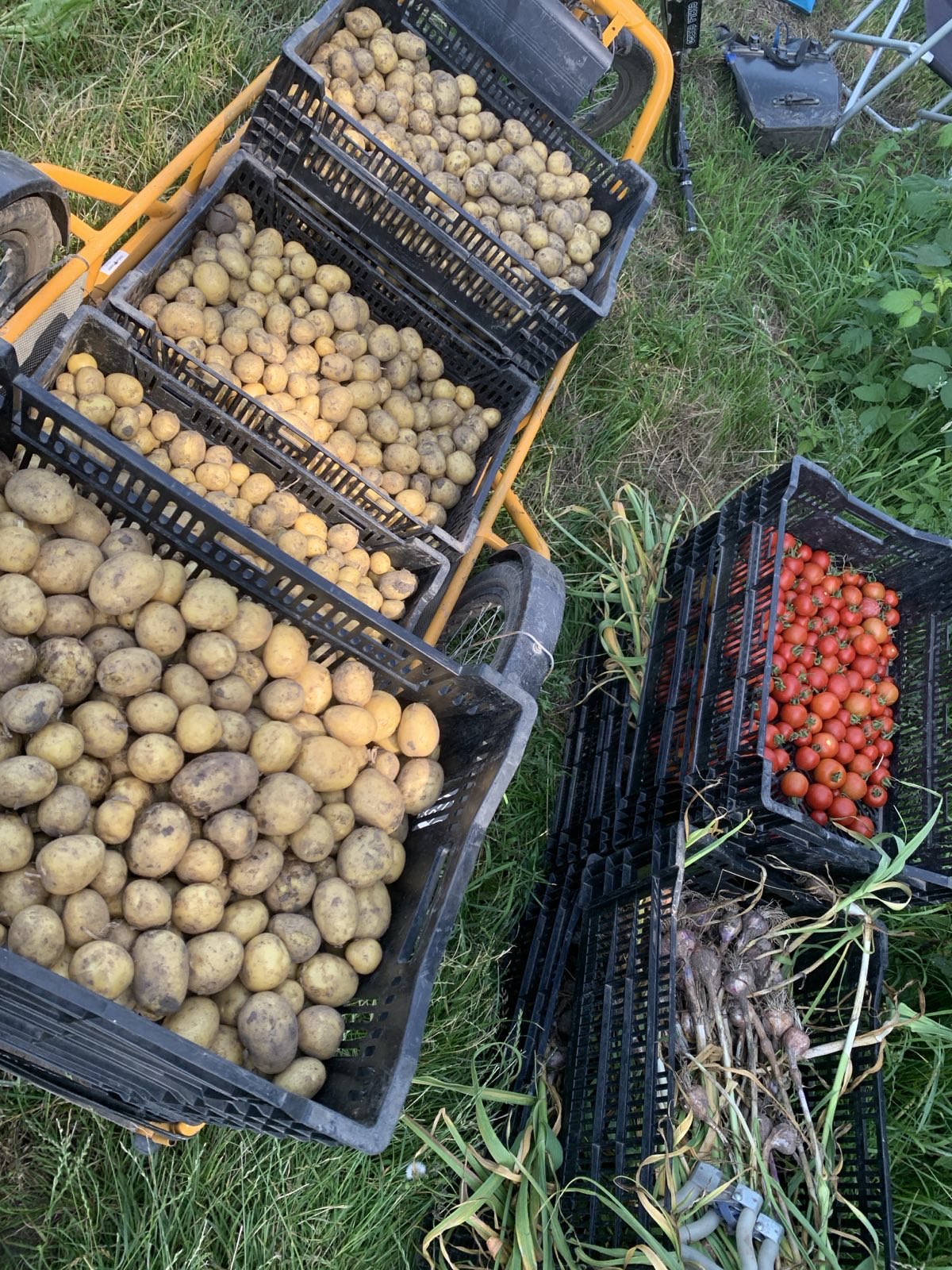 Auf dem Acker steht diese Woche vor allem Hacken und Jäten auf dem Programm – mit der Handhacke, der Babyfräse, der Traktorhacke und per Hand, je nach Unkrautgröße und -dichte. Auch wenn wir durch das viele Regenwetter der letzten Wochen eine kleine Unkrautwelle vor uns herschieben, bekommen wir das aktuell wieder gut in den Griff.