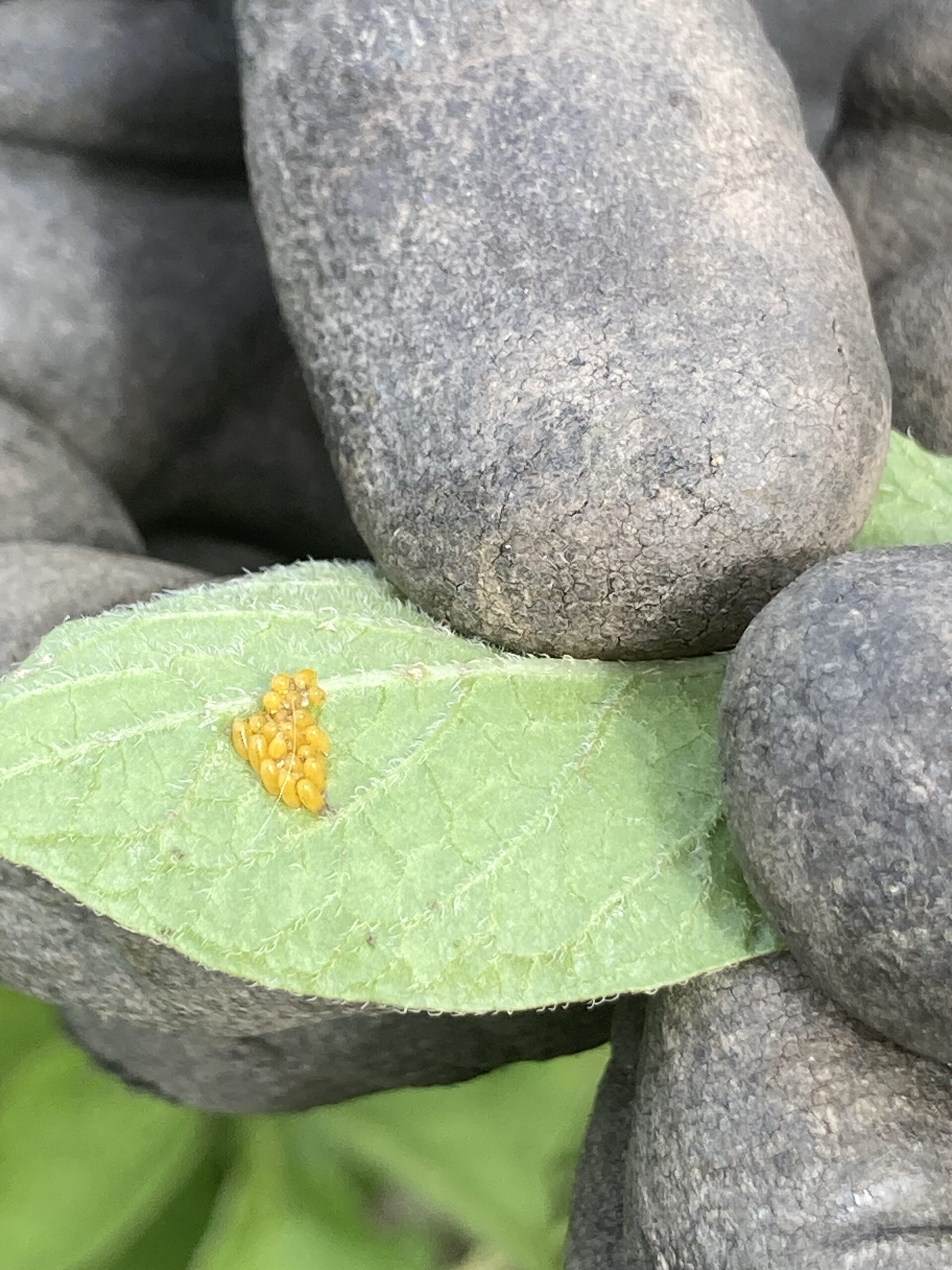 aufgefuttert. Die adulten Tiere legen gelbe Eigelege auf die Unterseite