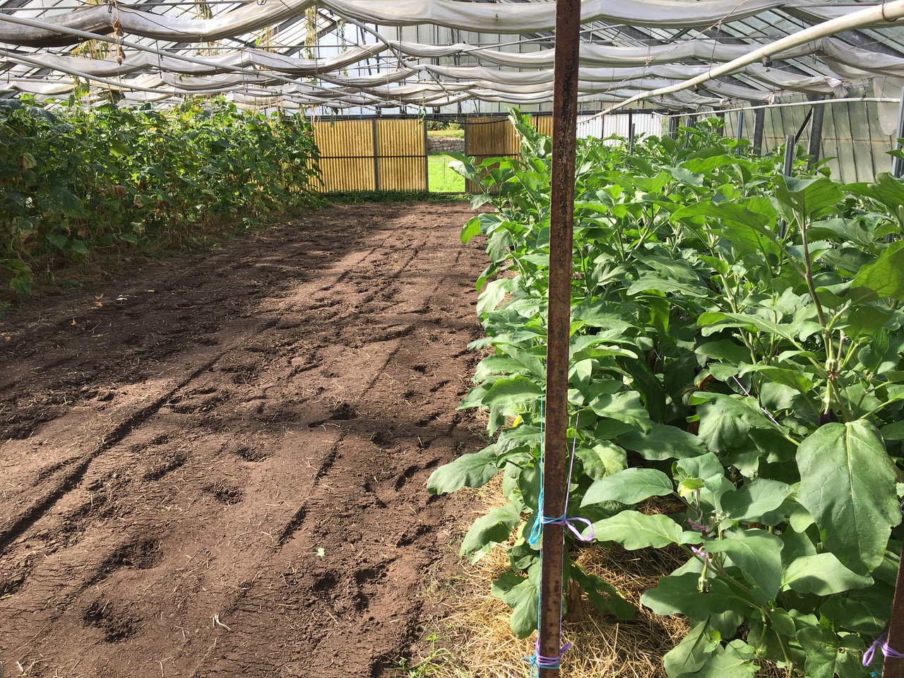 Die Herbstgemüse machen sich also deutlich bereit, den Staffelstab von den Sommergemüsen zu übernehmen. Den ersten Gurkensatz haben wir schon aus dem Gewächshaus geräumt, auch die Melonen weilen nicht mehr unter uns. Die Tomaten – ihr werdet es bemerkt haben – produzieren nun auch wieder weniger Früchte, die Zucchini fast gar keine mehr. Es bleiben die Paprika, die ihre Hochphase noch nicht beendet haben, und auch die Auberginen geben noch nicht auf. Sie sehen nach wie vor prima aus, ihnen hat der heiße Sommer gut gefallen.