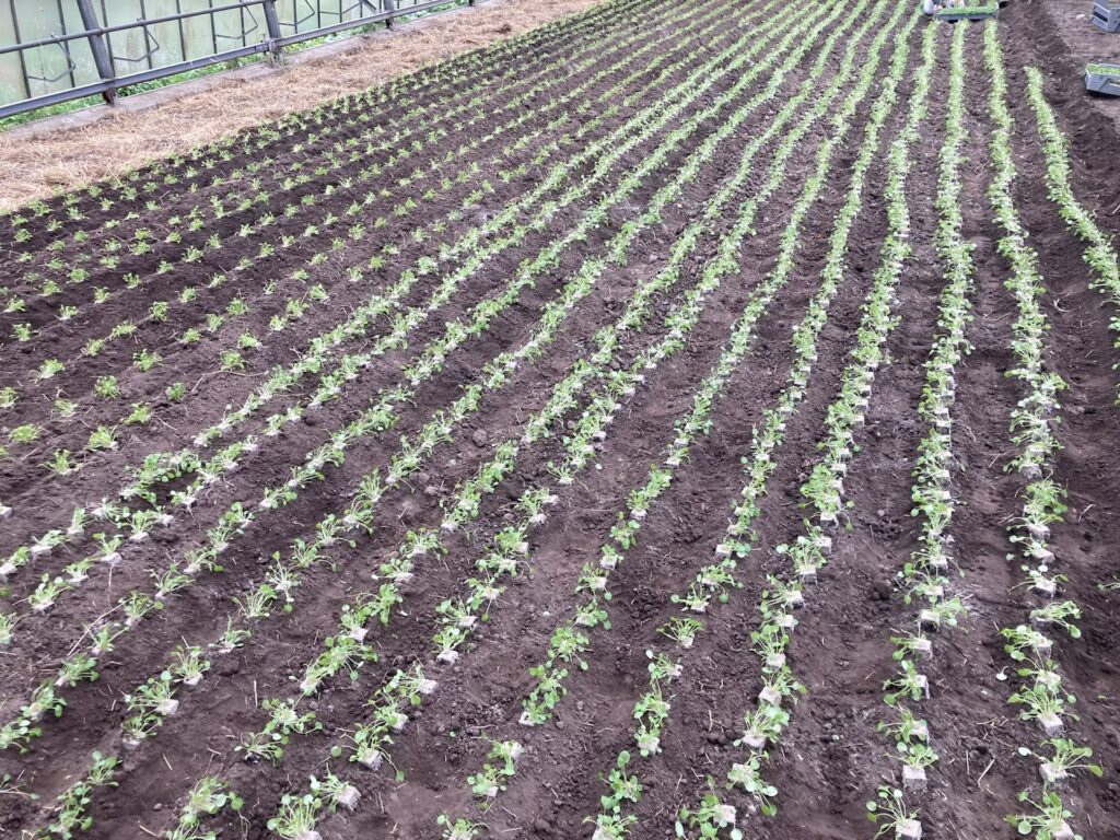 wie ihr schon in vorherigen NvA erfahren habt, haben wir schon einige Sommerkulturen aus den Gewächshäusern geräumt. Diese Woche kam die Jungpflanzenliefe rung und wir konnten Winterkresse, von manchen auch Barbarakraut genannt, und Postelein pflanzen. Beides Gewächse, die auch bei niedrigen Temperaturen noch wachsen und sogar Frost bis zu einer gewissen Grenze aushalten. Perfekt um auch im Winter nicht ganz auf frisches Grün beim Essen verzichten zu müssen.