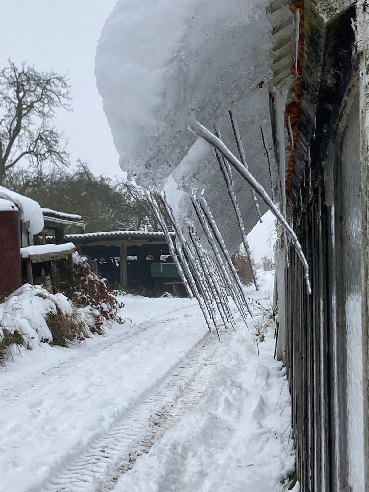 allerdings nur einen Meter breit, dann wird die Schneelast so groß, dass