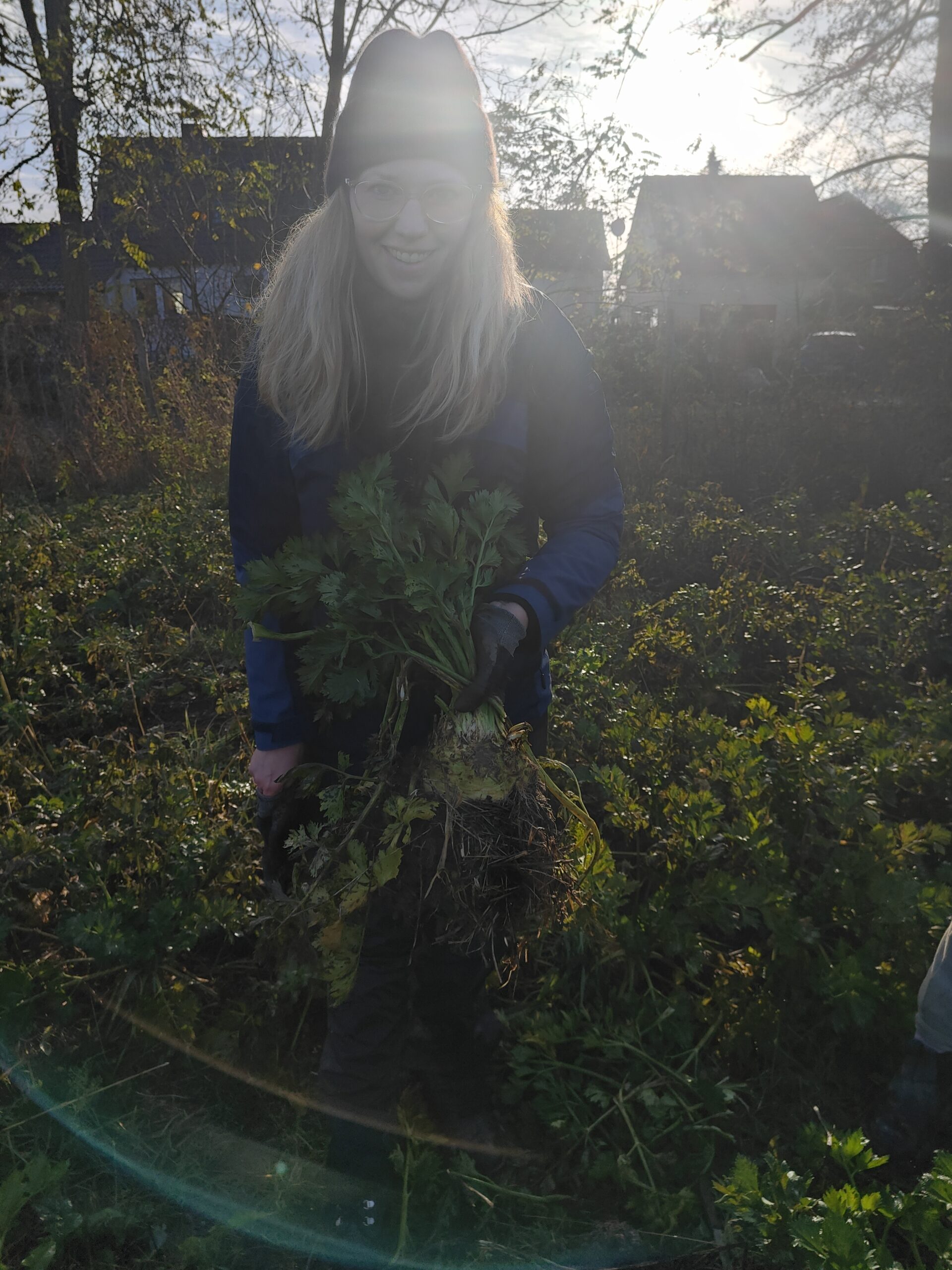 ein paar Möhren übrig. Der Sellerie ist schon geerntet und hat einen