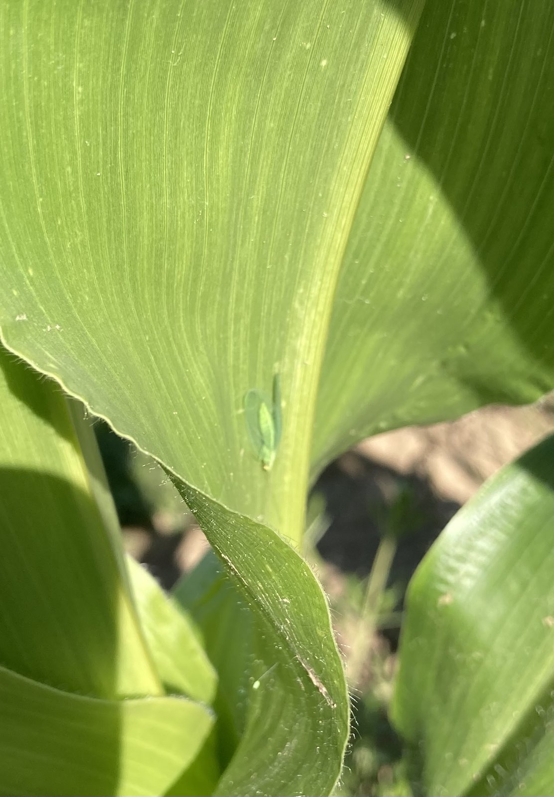 Das Grüne Ding auf dem Grünen Ding (Mais) ist eine Florfliege. Das ist