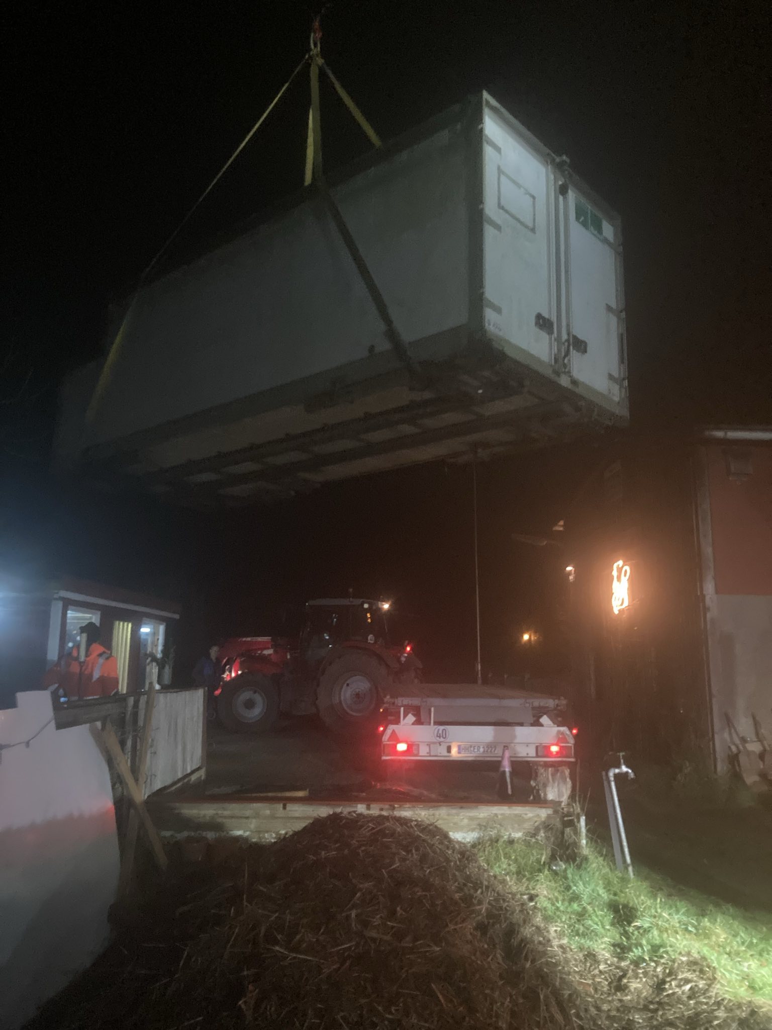 Gestern ist Unfassbares vollbracht worden! Fähige Menschen, die ihre Maschinen sehr gut beherrschen und etwas für machbar hielten, wo andere abgewunken haben, haben uns den Kühlcontainer nach Ochsenwerder umgezogen.
